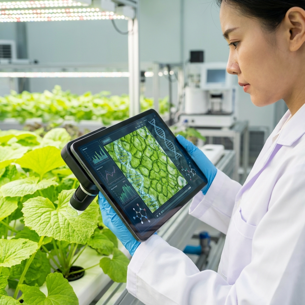 순화가 완료된 묘는 RT-PCR 바이러스 검사를 통해 무병 상태를 최종 확인합니다. 잎의 매수(4-5매)와 뿌리 발달 상태(5cm 이상) 등 엄격한 자체 기준을 통과한 "S등급 우량묘"만이 에어로포닉스 농장으로 이송됩니다.